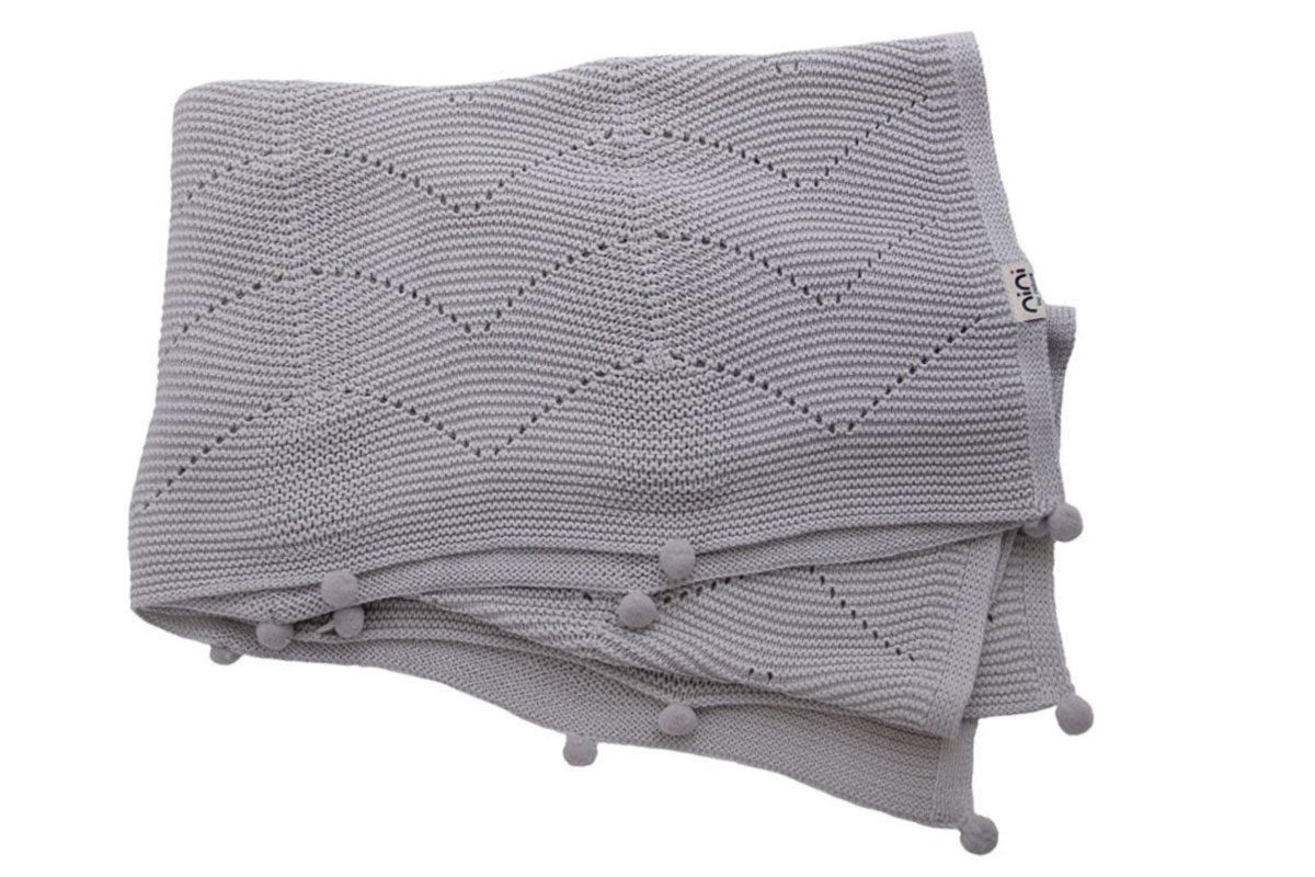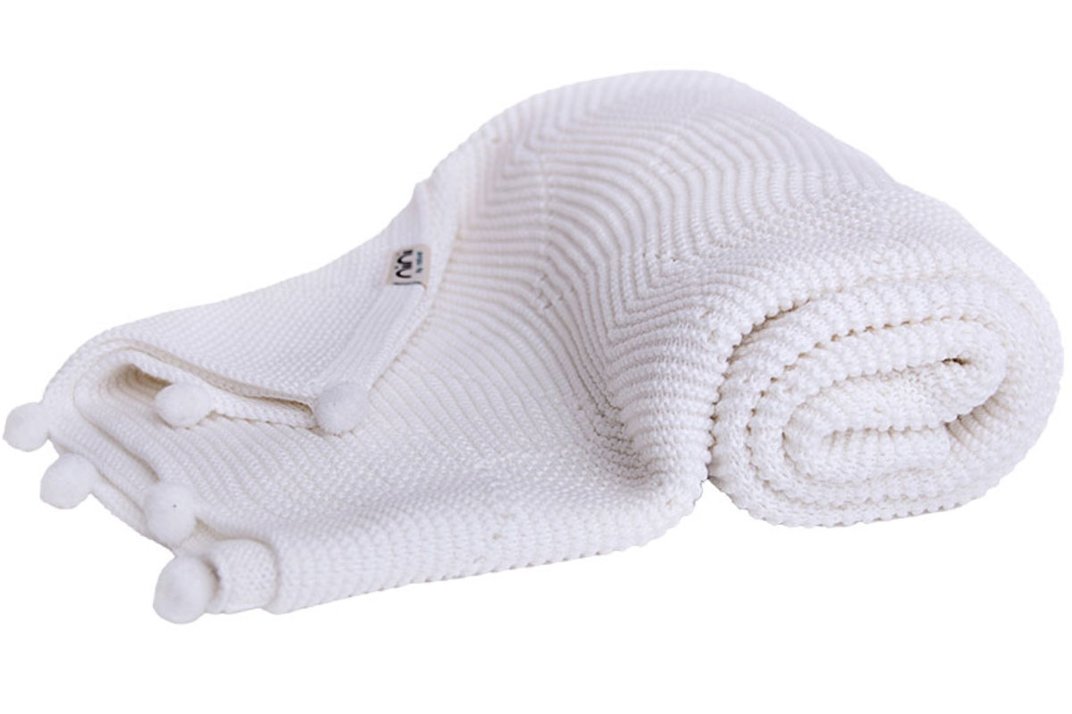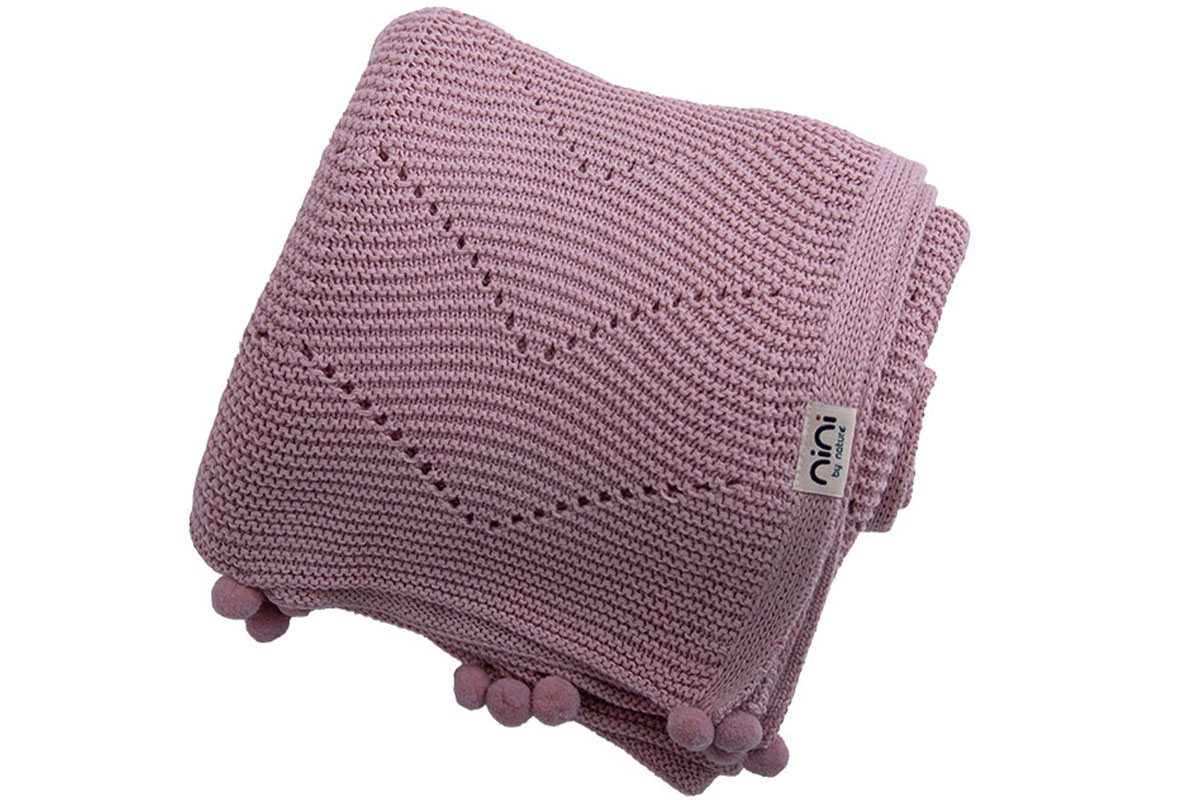 Welcome nature into their nursery with the Nini Baby Blanket, featuring a warm colour palette and curved texture, accented by playful pom-poms, adding a touch of elegance to any nursery.
